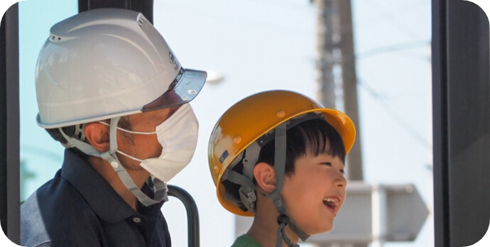 子どもたちに建設の魅力を届けるため、工事中の現場で「キッズ現場見学会」を開催。工作やビス打ち、重機の試乗体験などを通じて、建設の仕事を身近に感じられる機会をつくっています。 親子の会話が広がるきっかけにもなり、未来を担う子どもたちに向けて、建設業界をもっと盛り上げていく取り組みです。